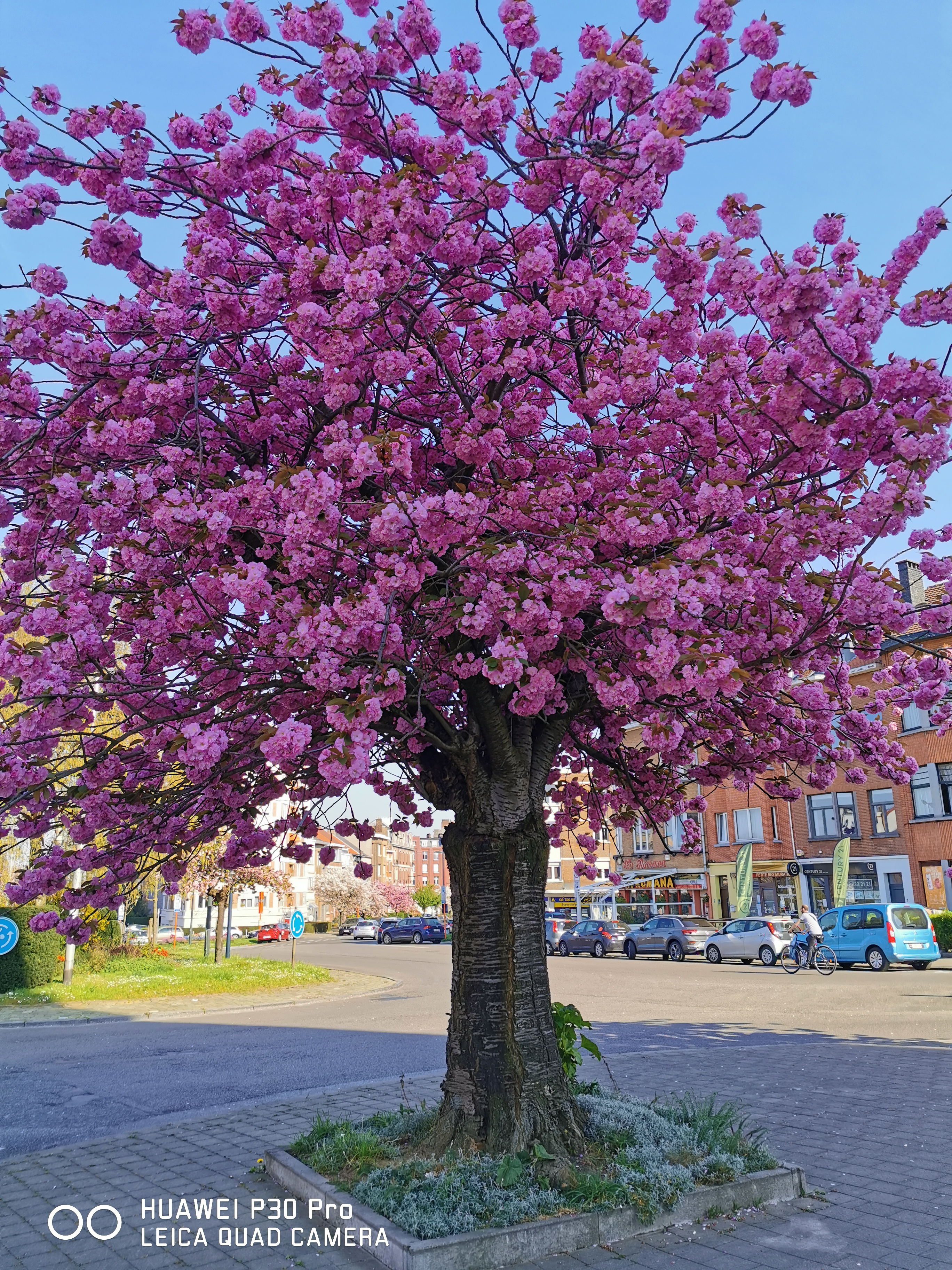 In this first example, we can see how the P30 Pro oversaturates the pink colour of the tree flowers, giving the picture a very different look from what it looks like in reality, with the Mate Xs being closer to reality: